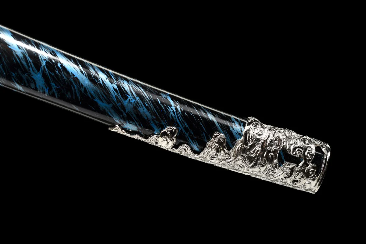 Le saya, réalisé en bois léger laqué et décoré, protège la lame tout en facilitant un dégainage fluide. La finition laquée, à la fois esthétique et pratique, offre une protection contre les éléments, assurant ainsi la longévité du fourreau et la sécurité de la lame. La légèreté du saya permet une manipulation rapide, essentielle pour les entraînements ou les démonstrations.